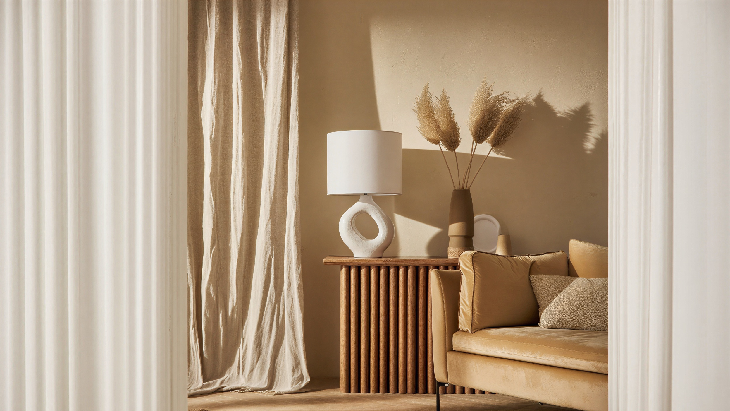 Bordslampa | Keramik och tyg i retrostil